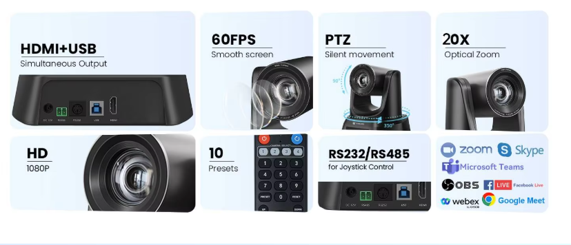 - Support Visca, Pelco-P, and Pelco-D protocol, RS232/RS485 Camera Control