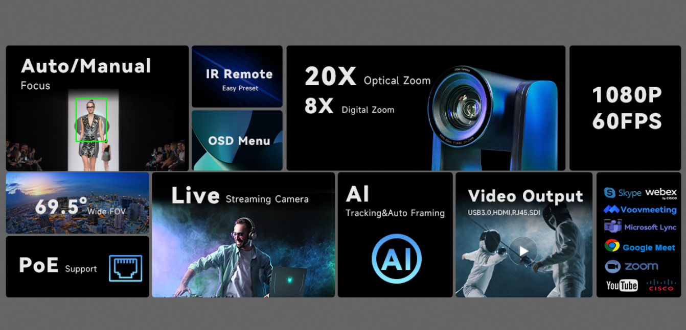- Auto-framing and auto-tracking function